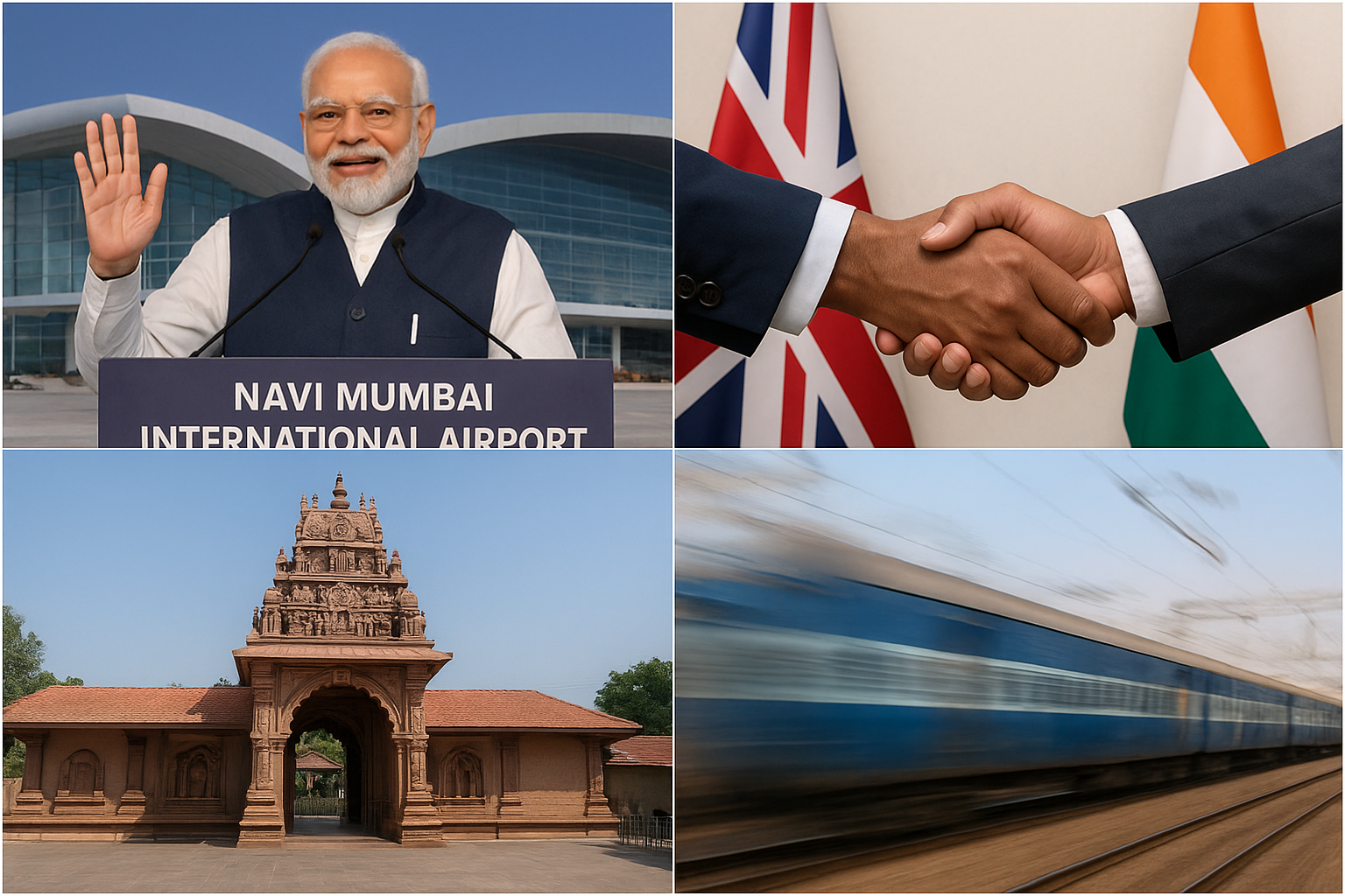 India’s news cycle this week has been a whirlwind — from grand infrastructure rollouts and bold international trade moves, to debates about religion, decency, and viral social media moments. In one sweep, PM Modi inaugurated the Navi Mumbai International Airport, a landmark UK-India trade deal is rewriting import tariffs, a woman was denied temple entry over her attire, and a passenger locked himself inside a train toilet for hours. Let’s unpack what each of these stories means — socially, economically, and culturally.